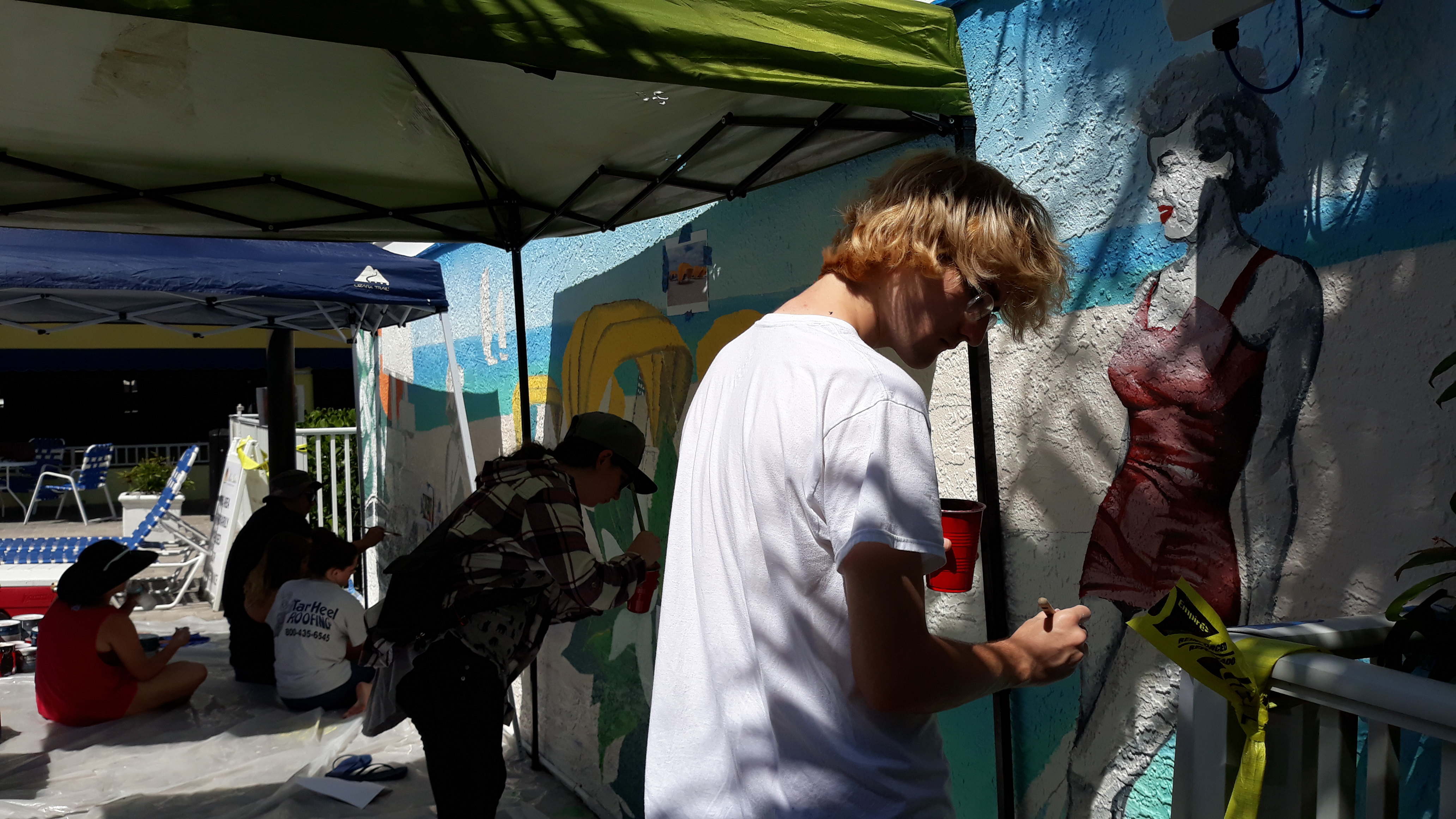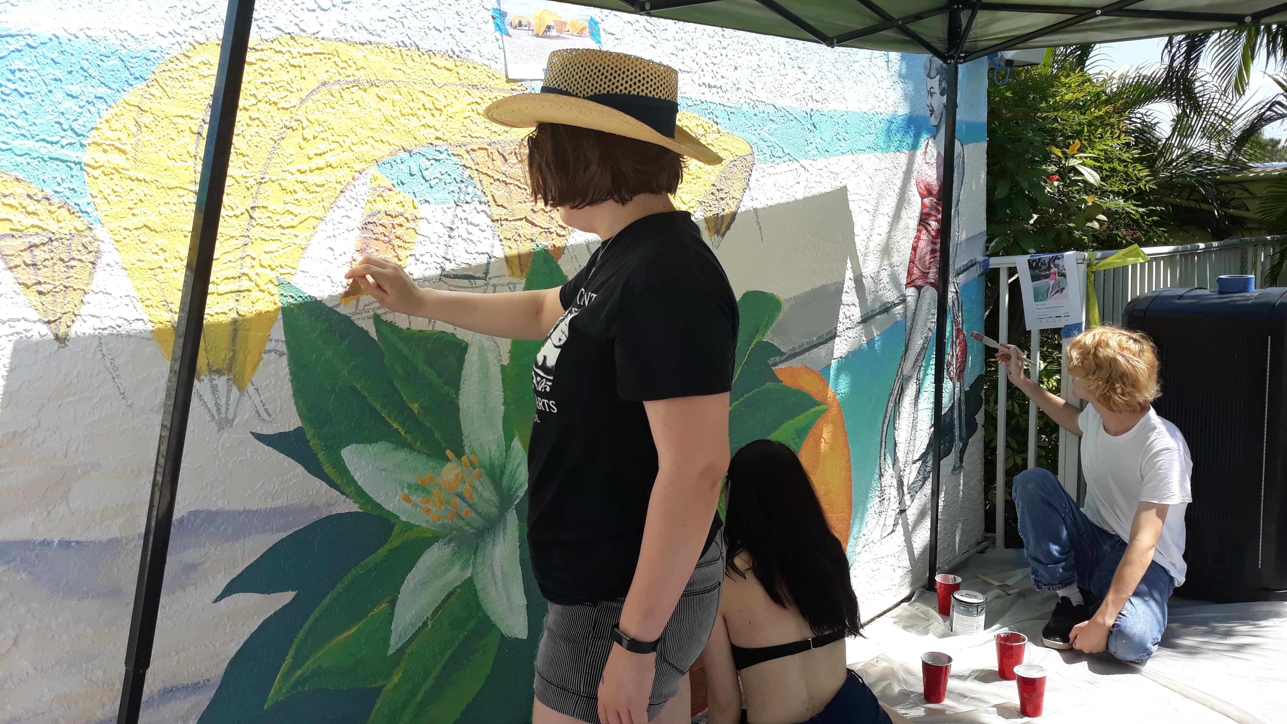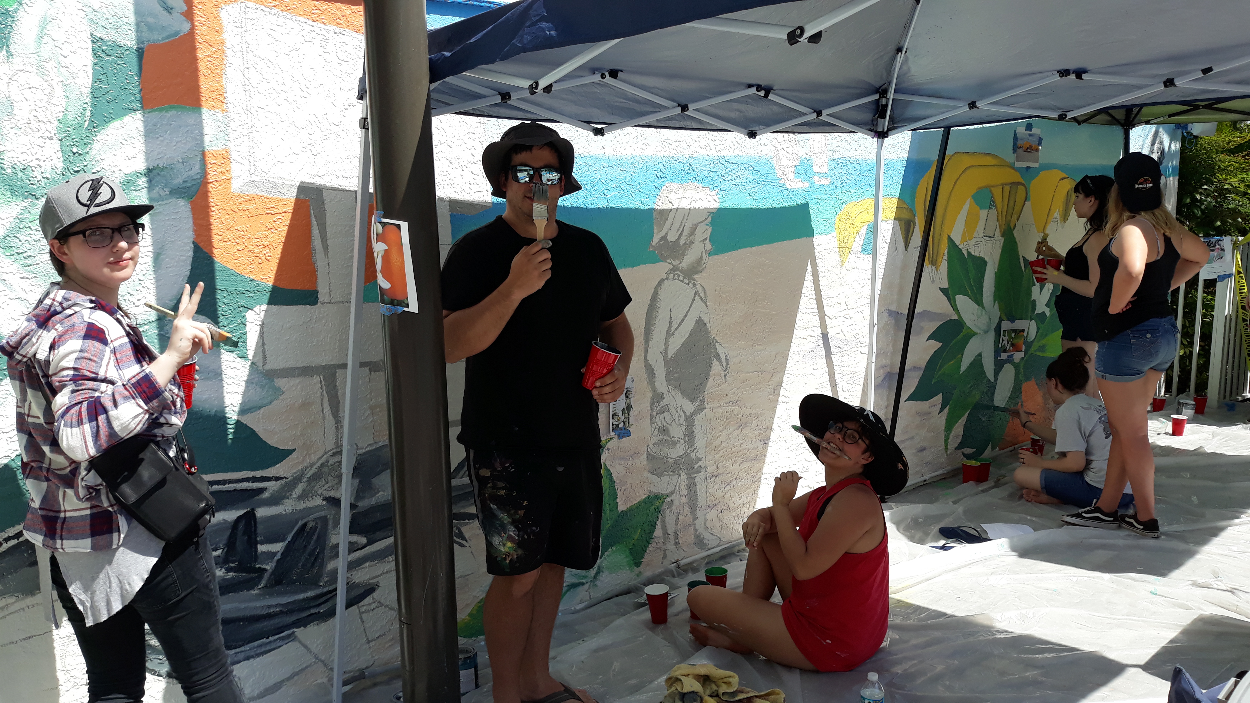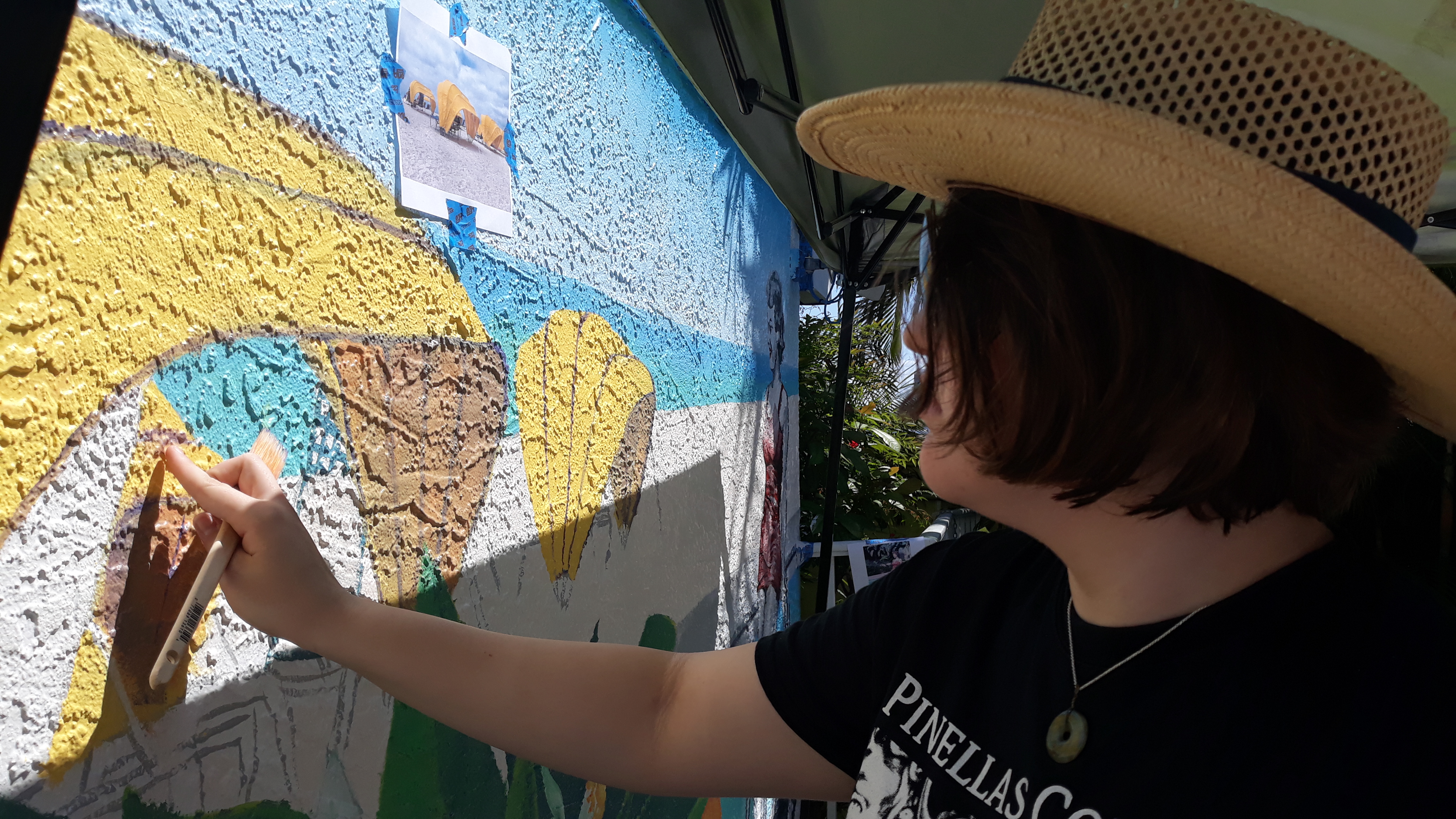 operated, and in collaboration with Gibbs Mural Club, we created a mural that connected people from far and wide. The theme for this mural was inspired by the vintage postcards that we all know so well. Creating a mural that represents the family-oriented nature of Alden Suites, St. Pete Beach, and Florida was the main objective for this project.