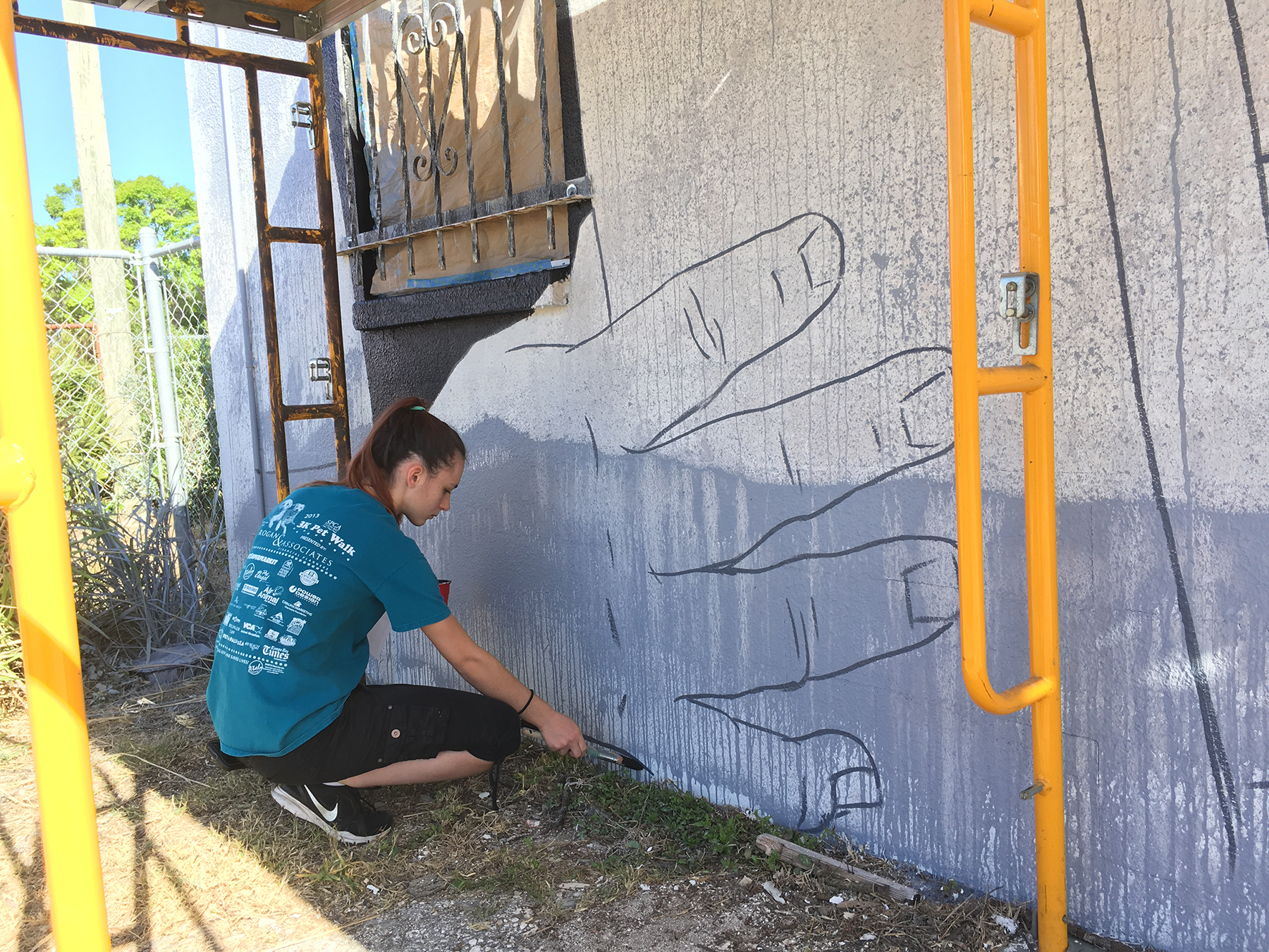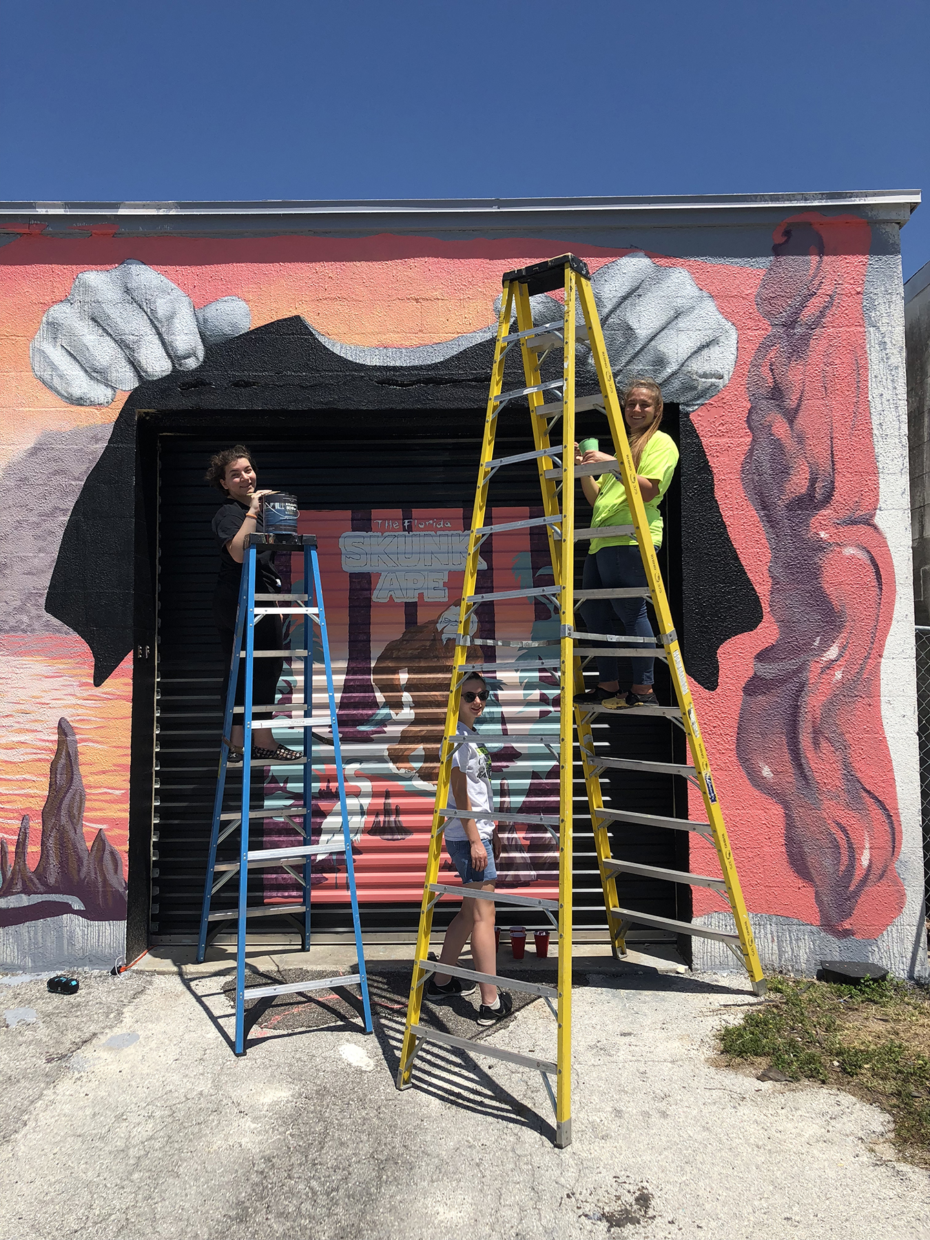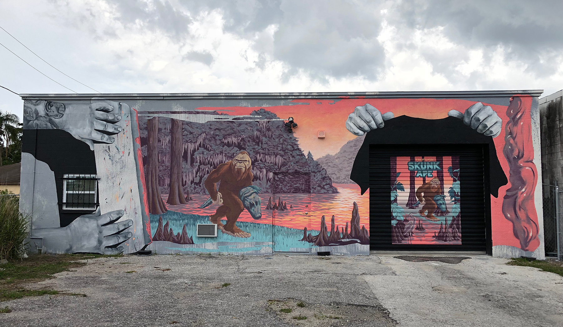 Public art offers a unique opportunity to share a story with its viewers. The theme of the mural uses screen printing elements in combination with local folklore. The Skunk Ape is a Floridian version of the Big Foot, aptly name after its pungent odor. Sightings are very rare, but they have been reported throughout the state. The Florida Skunk Ape is a story that many visitors and citizens of the state of Florida are unaware of. Never the less, it is important to understand the wildlife of Florida one may encounter before venturing into the jungle.